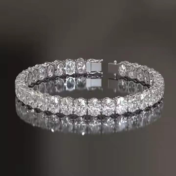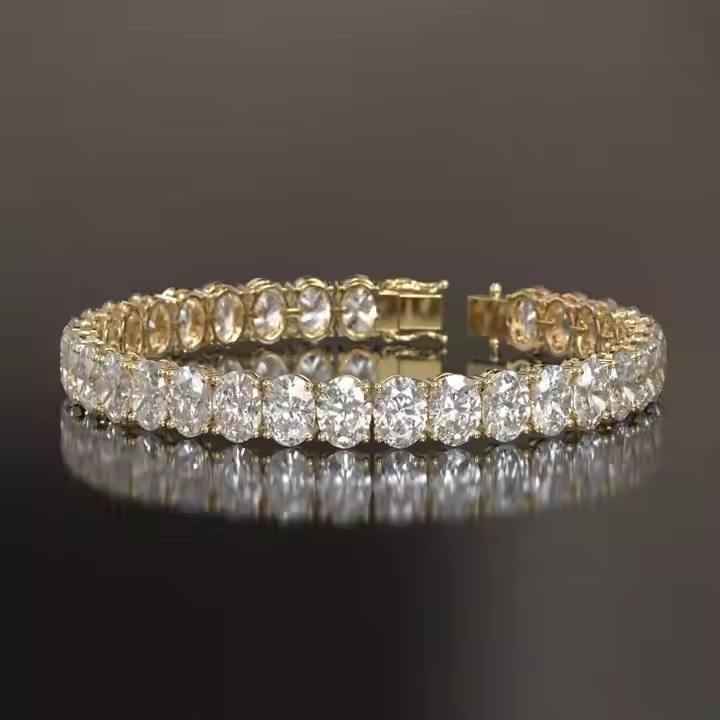 Women's 14K Solid Gold Tennis Bracelet with Lab Grown Eternity Oval Moissanite for Weddings & Special Occasions