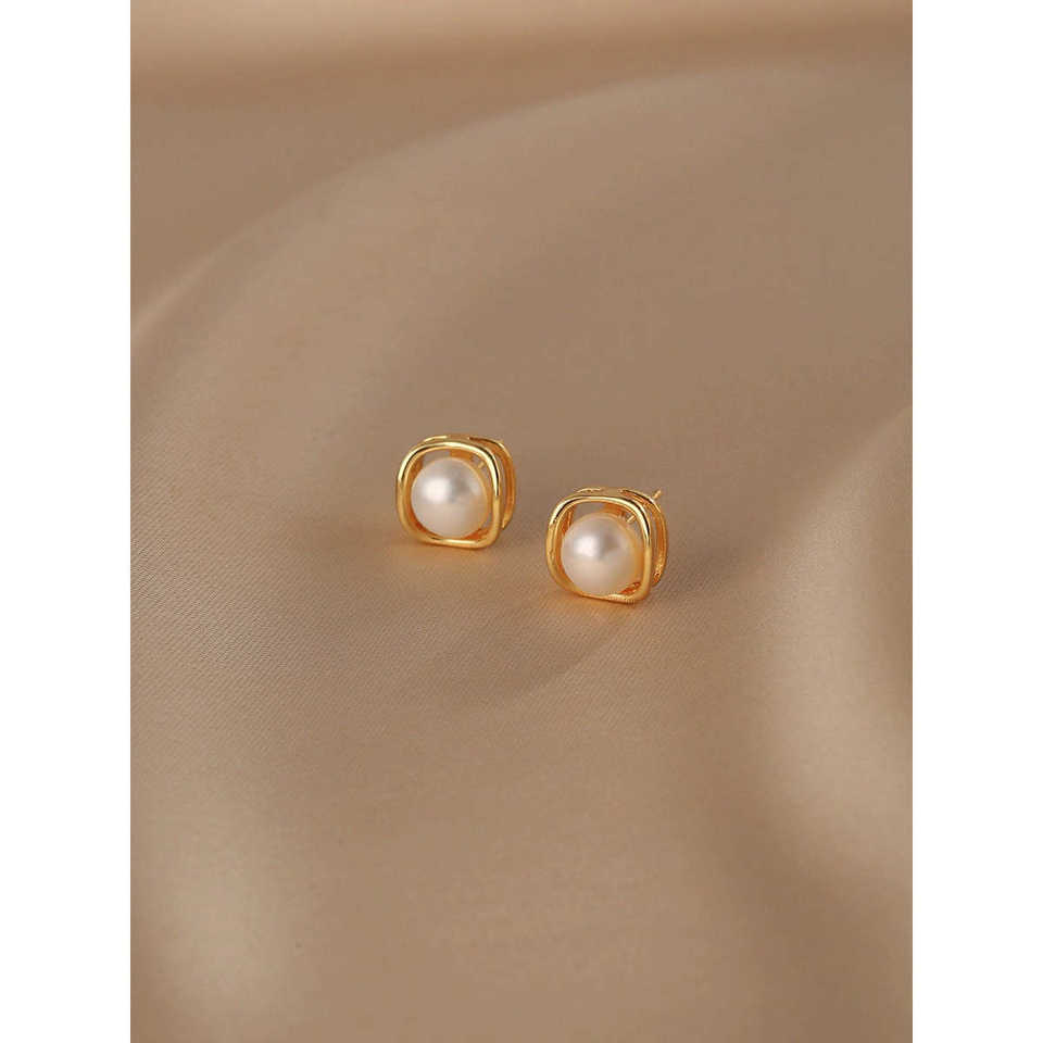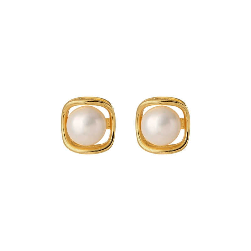 Women's 1611 Natural Pearl Stud Earrings S925 Sterling Silver Jewelry
