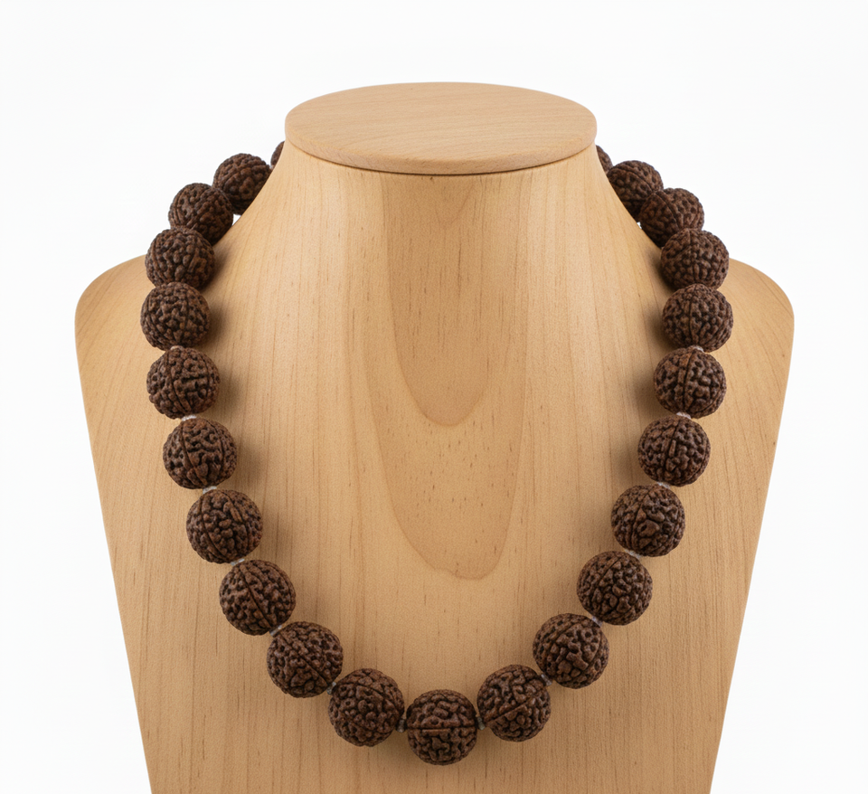 Women's 18-Inch Natural Rudraksha Stone Beaded Necklace Tibetan Silver 10K Gold Plated Geometric Design Trendy Gift Hand-made