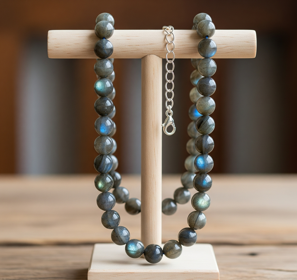 Women's 18-Inch Silver 925 Necklace Healing Natural Labradorite Stone Beaded Hand Knotted Design Freshwater Trendy Fashion