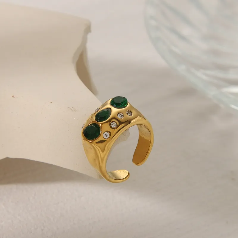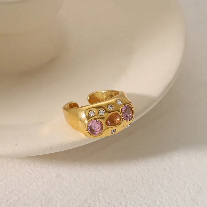 Women's 18K Gold & 304 Stainless Steel Plated Open Rings Classic & Simple Style with Inlay Zircon for Commute