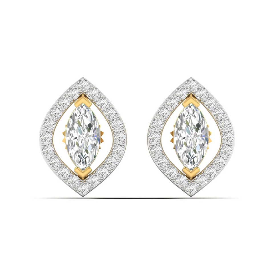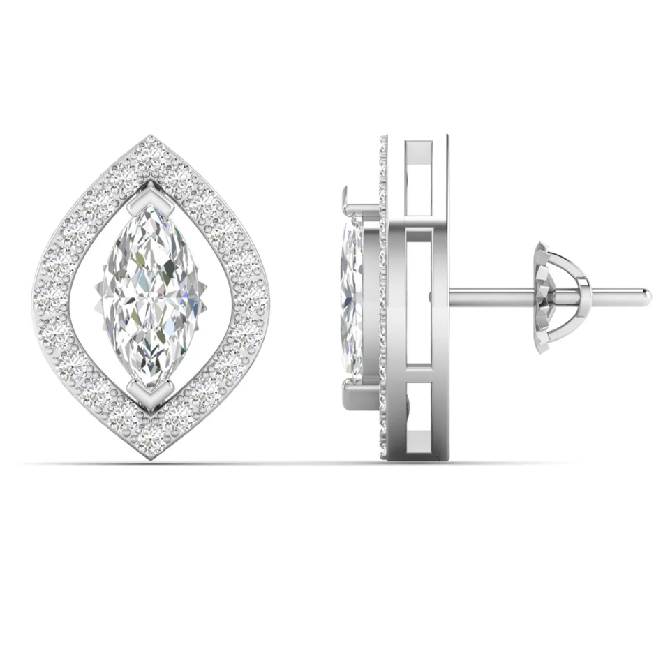 Women's 2 Carat Lab Diamond Marquise and Round Cut Halo Stud Earrings VS Clarity D Color in 14K Solid Gold Fine Jewelry