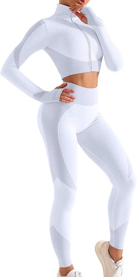 Women's 2 Piece Lace up Sports Bra Leggings Matching Set Women's Long Sleeve Long Top Pants Yoga Wear Workout Set Yoga