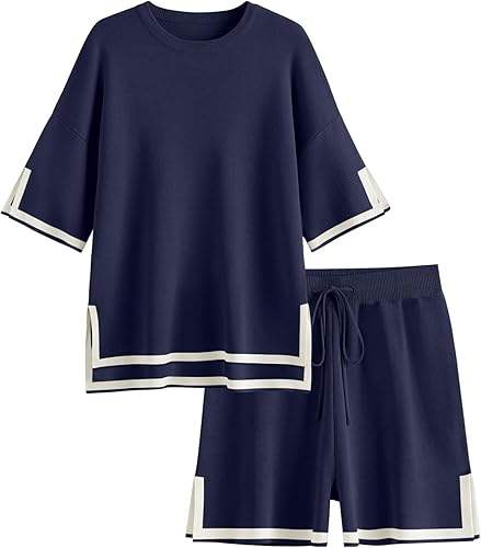 Women's 2 Piece Outfits Matching Lounge Sets for Women Summer Outfits Tracksuit for Women Knit Tops and Shorts