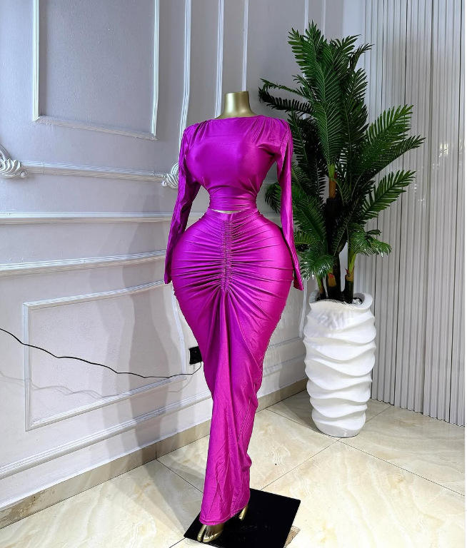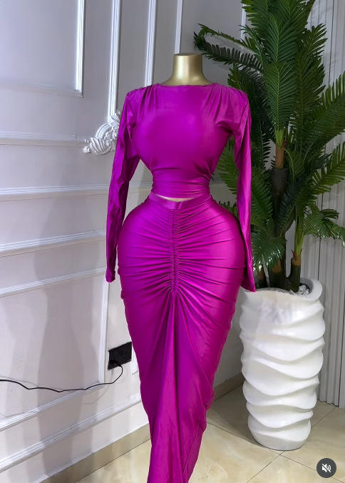 Women's 2-Piece Ruched Set Long Sleeve Crop Top & High Waist Maxi Skirt for Party & Evening Wear Fashion