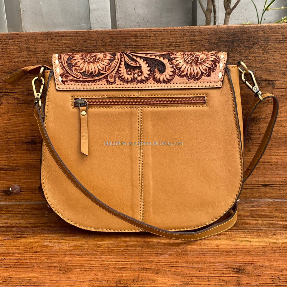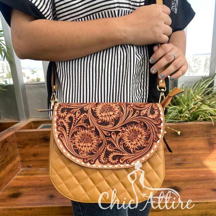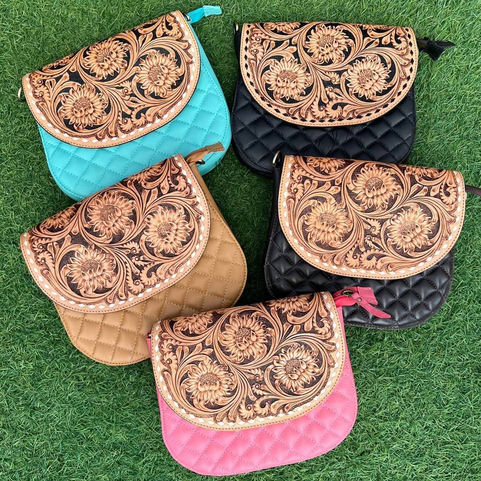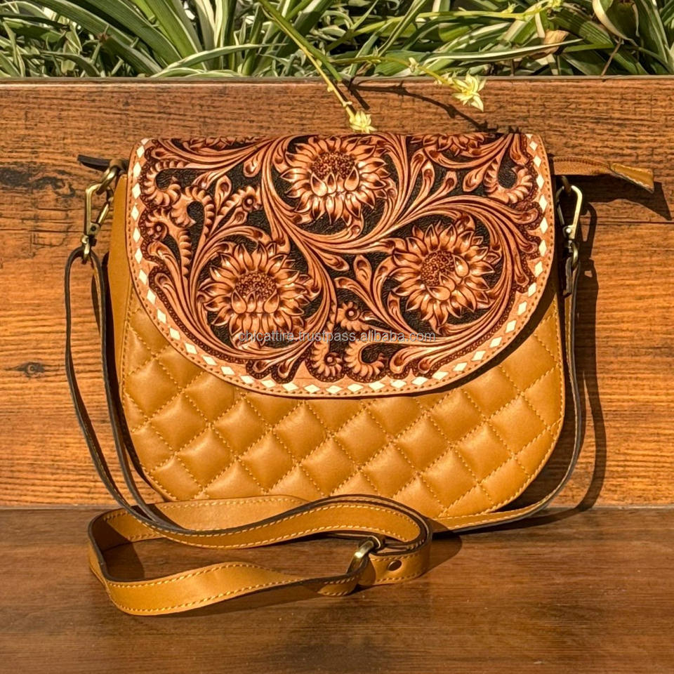 Product name:Hand Tooled Diamond Lattice Crossbody Bag