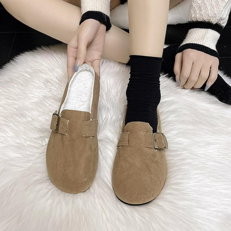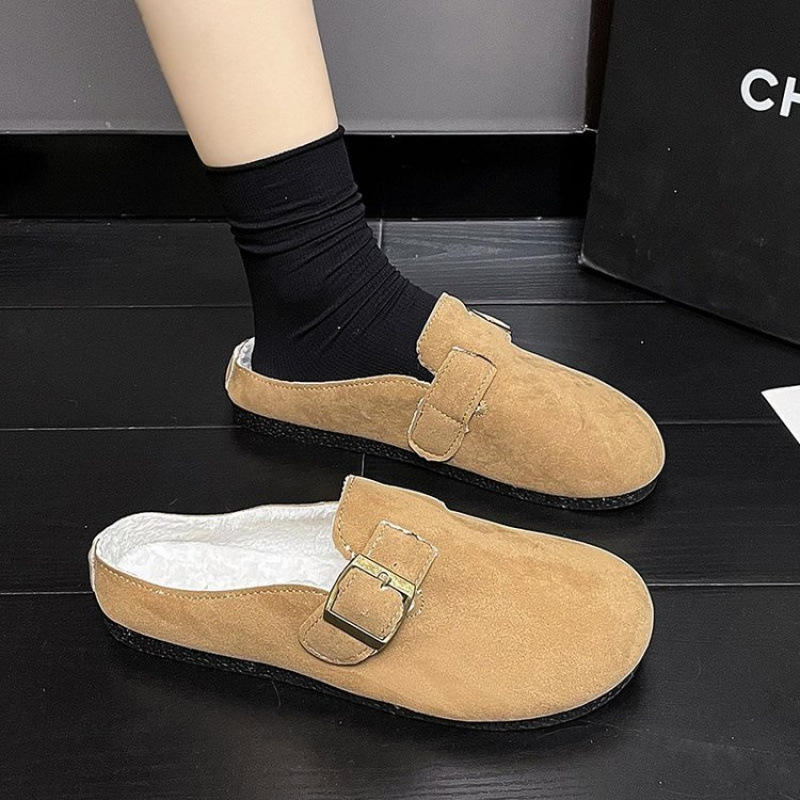 Women's 2024 New Winter Birkenstocks Soft-Soled One-Step Plus Velvet for Slippers with Fluffy Fur Thick-Soled Half-Slippers