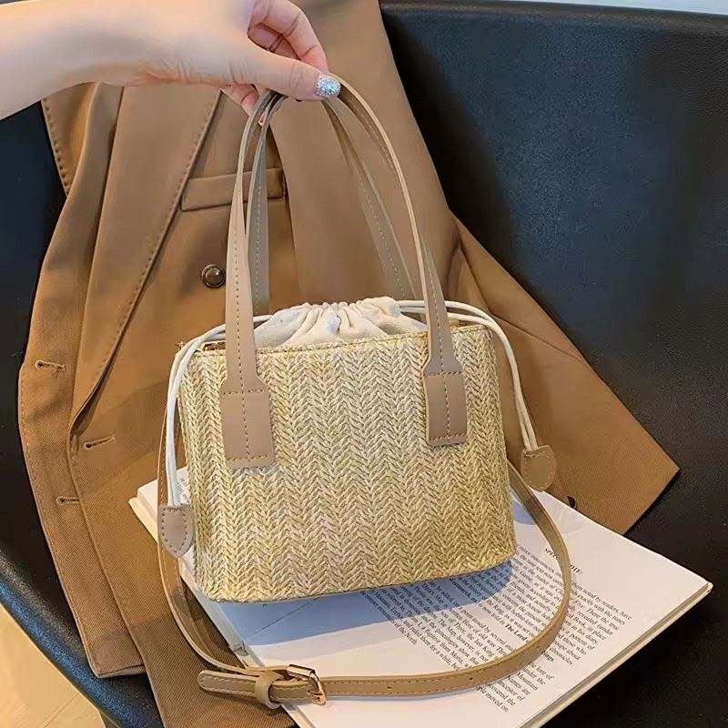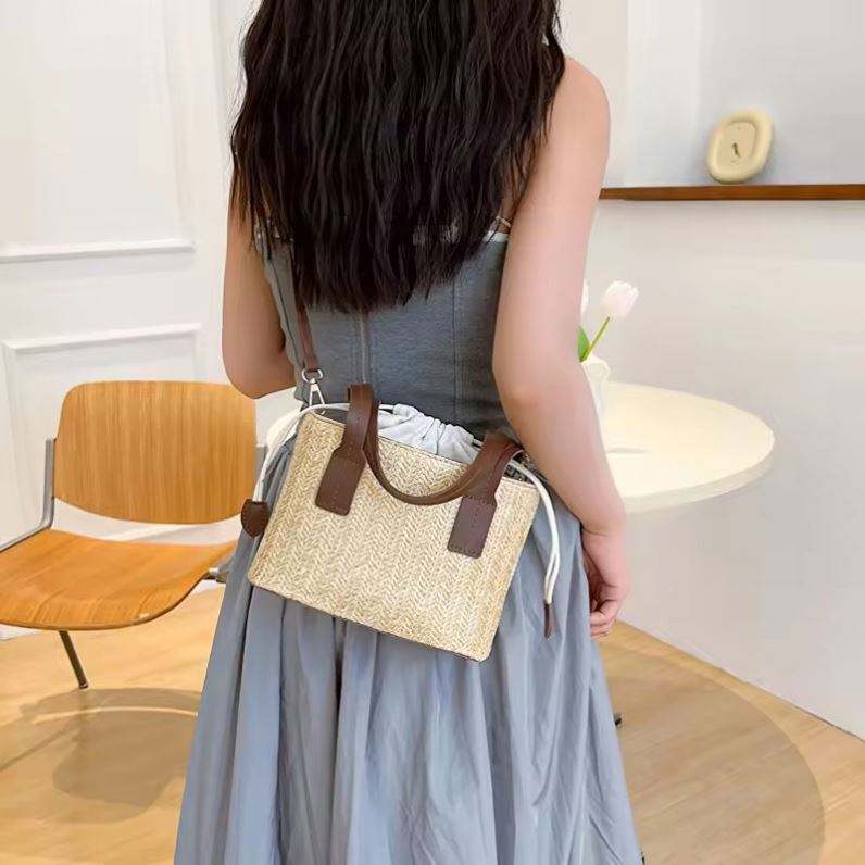 Women's 2024 Spring Woven Handheld Tote Bag Single Strap Portable Crossbody Vacation Bag with Polyester Lining