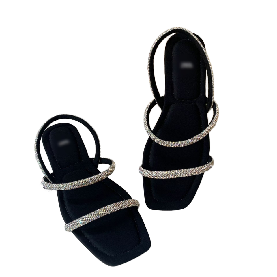 Women's 2024 Summer Fashion Trend Leisure Rhinestone Beach Flat Sandals Outdoor Rubber Outsole Toe Casual Solid Pattern PU Upper