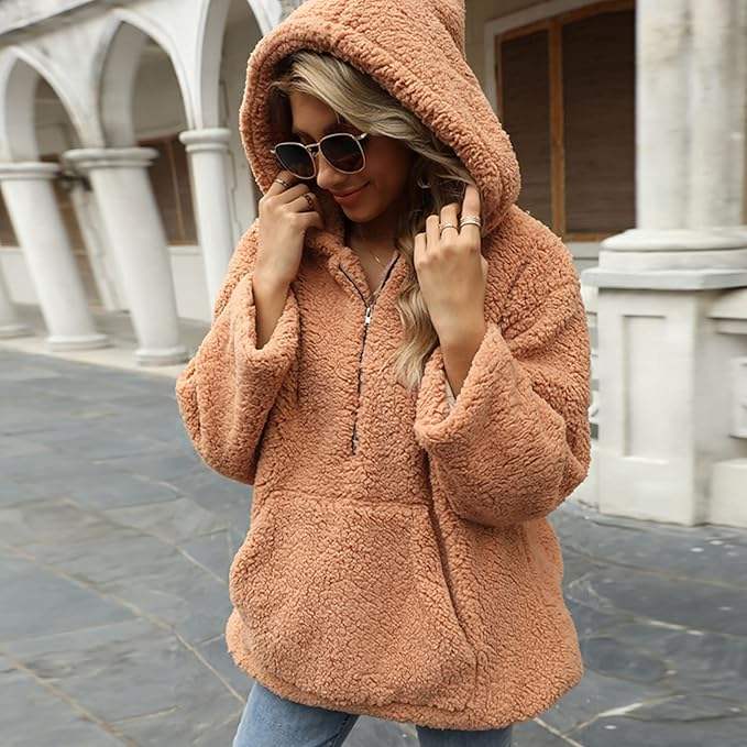 Women Thick Warm Bear Pocket Sherpa Fleece Jacket
