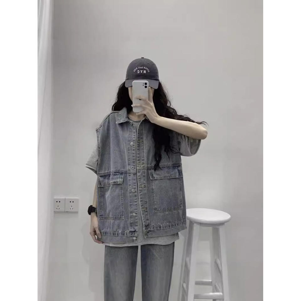 Women's 2025 Autumn Winter Hong Kong Style Washed Denim Vest Loose Versatile Retro Jacket Coat Korean Version BF Trendy Fashion