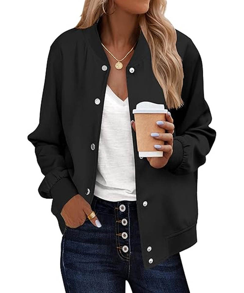 Product name:Bomber Jacket Women Varsity Casual Button Down Lightweight