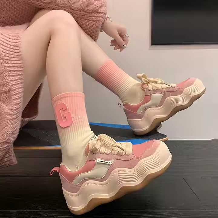 Women's 2025 New Casual Single Cow Leather Upper Shoes Small White Student Walking Style 7cm Thick Sole Platform Rubber Midsole