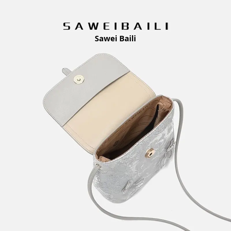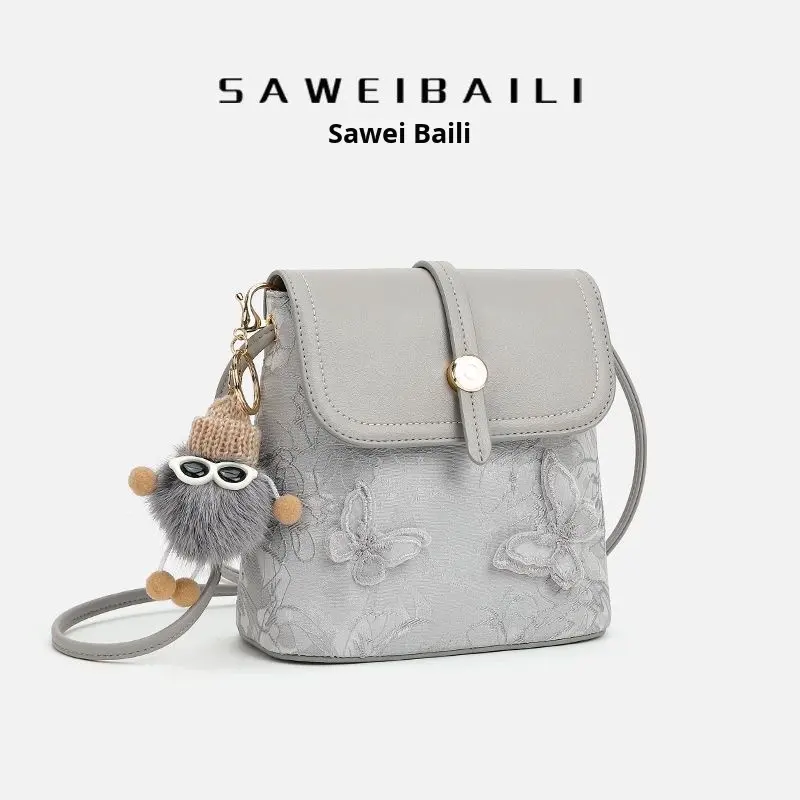 Women's 2025 Trendy Niche Chinese Style Lace Butterfly PU Crossbody Bucket Bag Polyester All-Match Mini Exquisite Small Square
