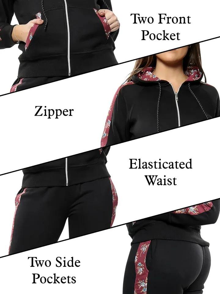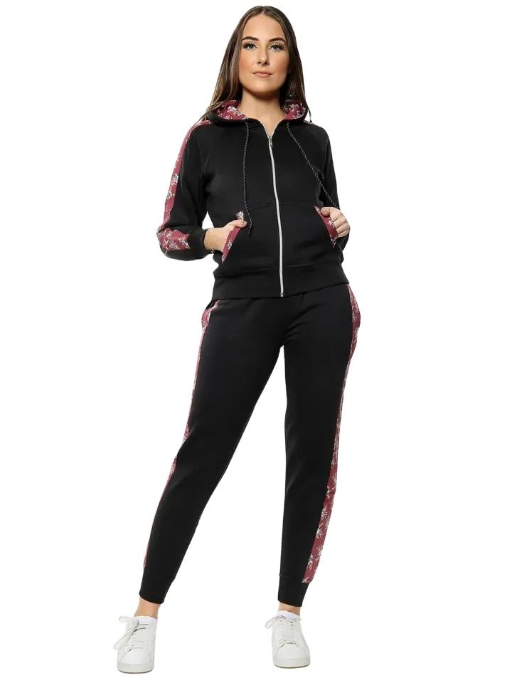 Women's 2PCS Printed 100% Cotton Front Logo Loungewear Set Top Hoodies & Pants Tracksuit