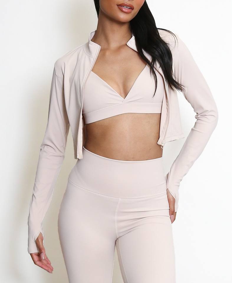 Product Name:Sports Bra Zip Front Jacket Top Legging Gym Set