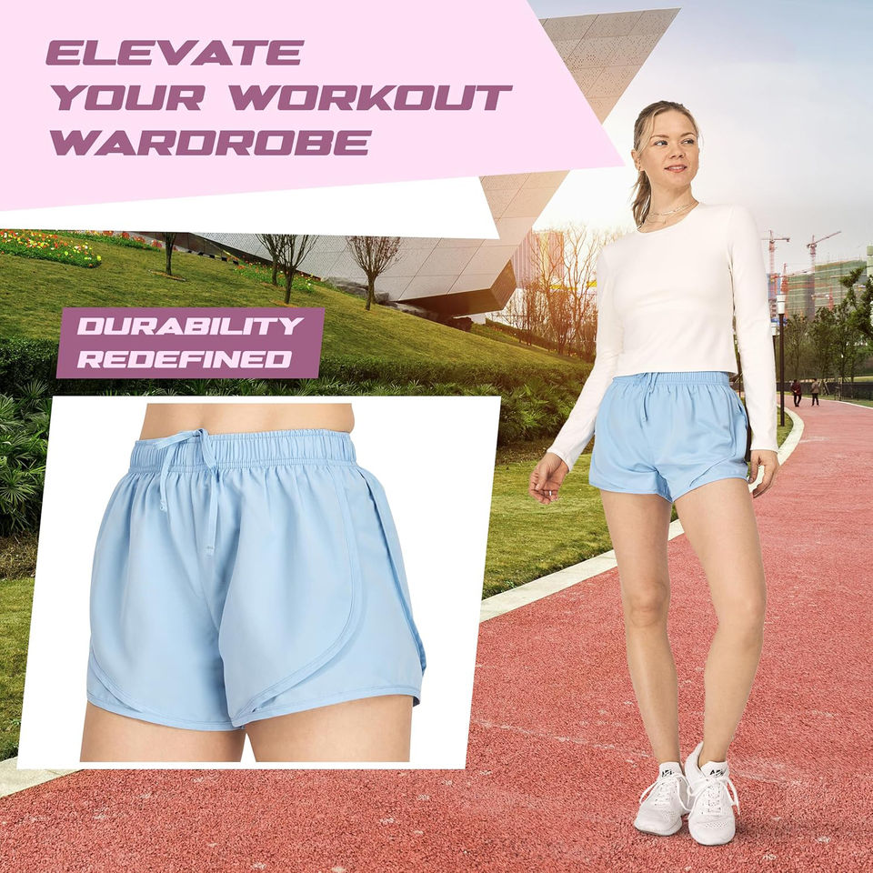 Women's 4-Pack Summer Athletic Workout Gym Shorts in Black Grey Bell Blue Purple with Breathable Brief Liner Shorts For Women