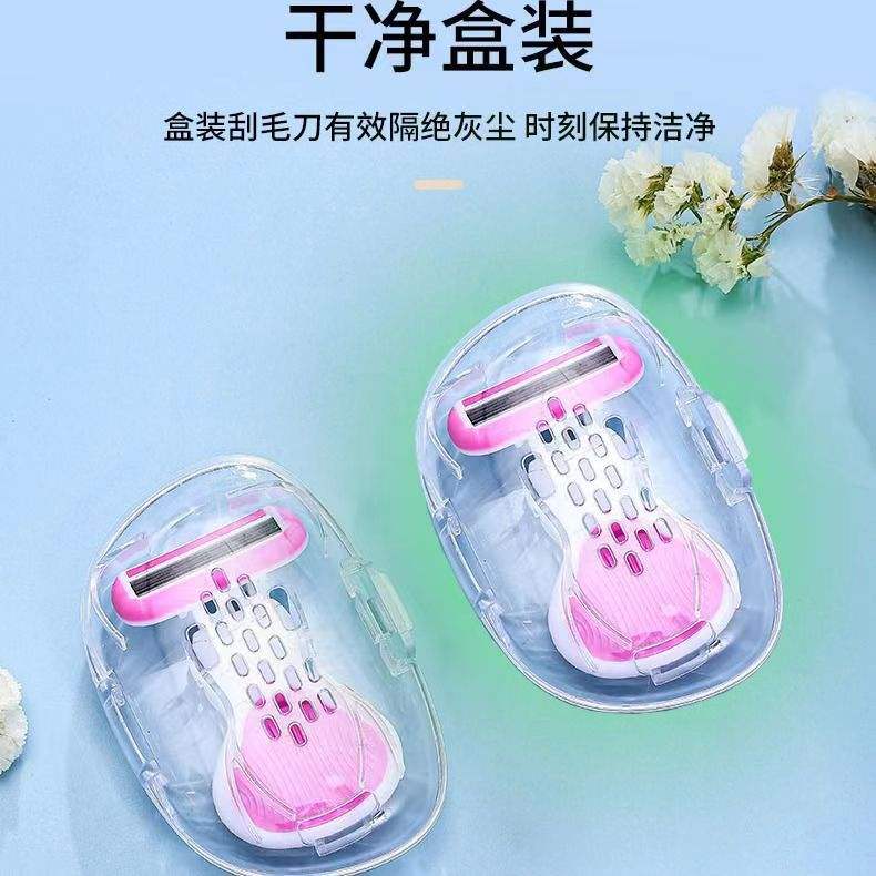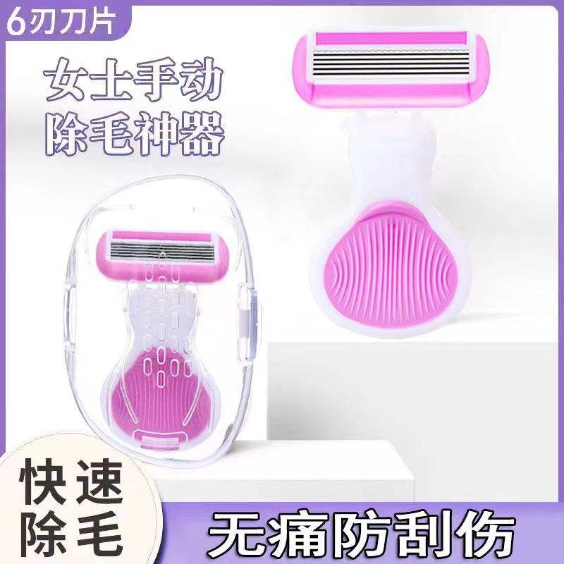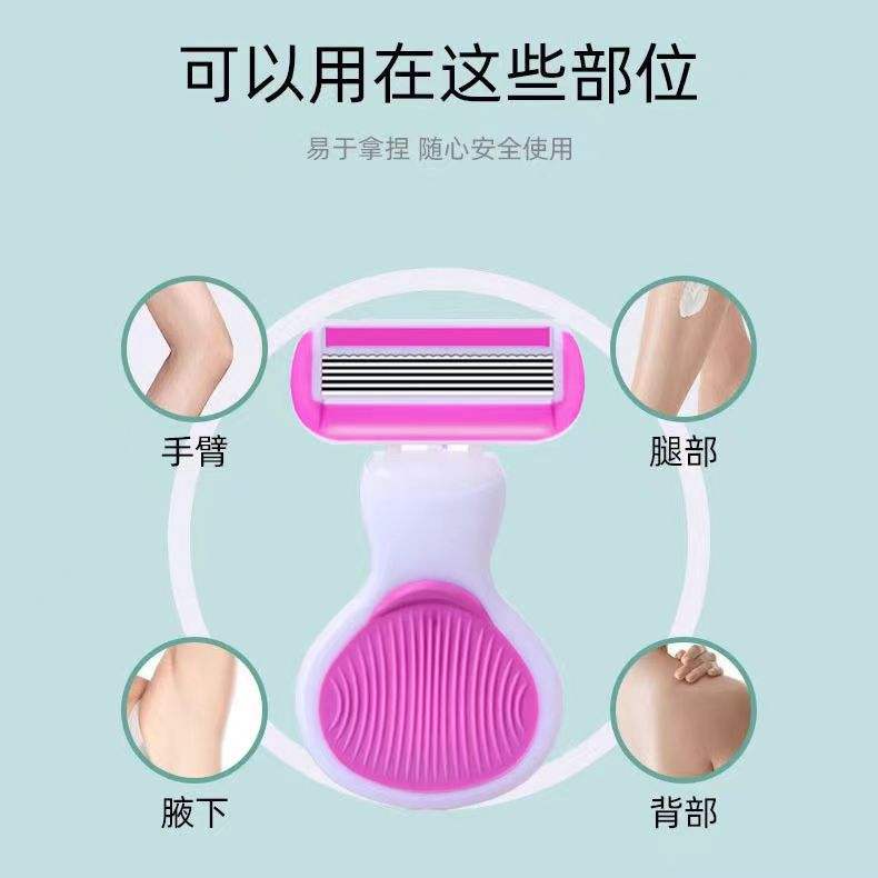 Women's 6 Layer Manual Razor Stainless Steel Blade Pink Underarm Leg Pubic Hair Removal Razor With Protective Guard