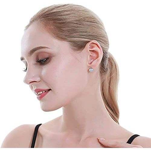 Women's 6 Pairs Silver Stud Earrings 3-8 mm 316L Surgical Stainless Steel Hypoallergenic Cubic Zirconia Religious Style