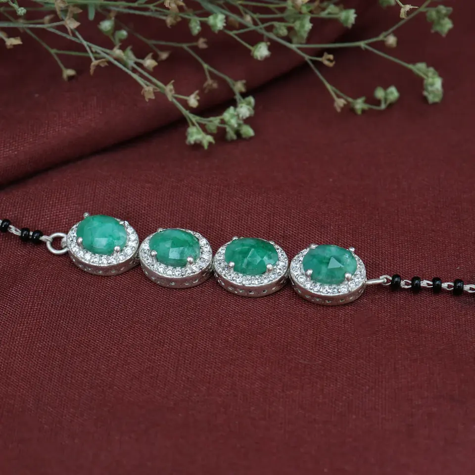 Women's 925 Silver Beaded Bracelet with Emerald Gemstone Fashion Jewelry