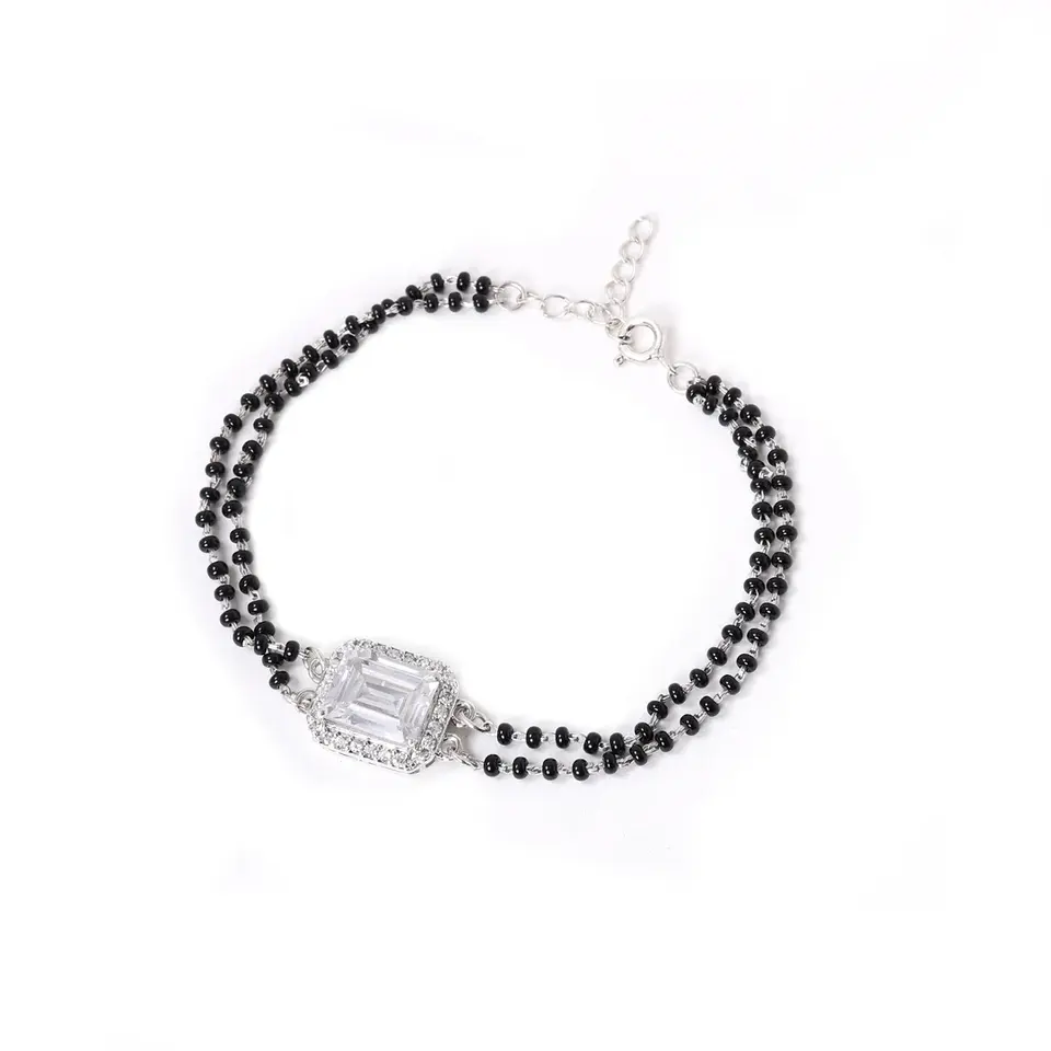 Material:925 Sterling Silver,Black Beads,Cubic Zirconia