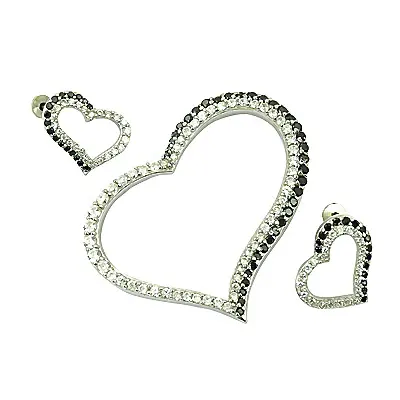Women's 925 Silver Cubic Zirconia Heart Stud Earrings Crystal Jewelry Set