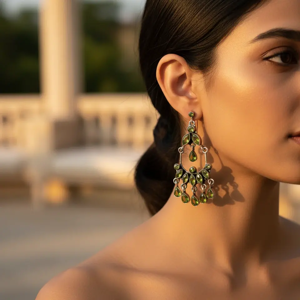 Women's 925 Silver Dangle Chandelier Earrings with Peridot Fashion Jewelry