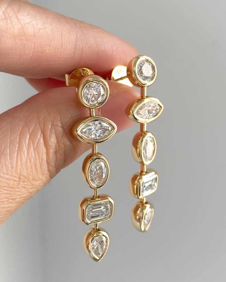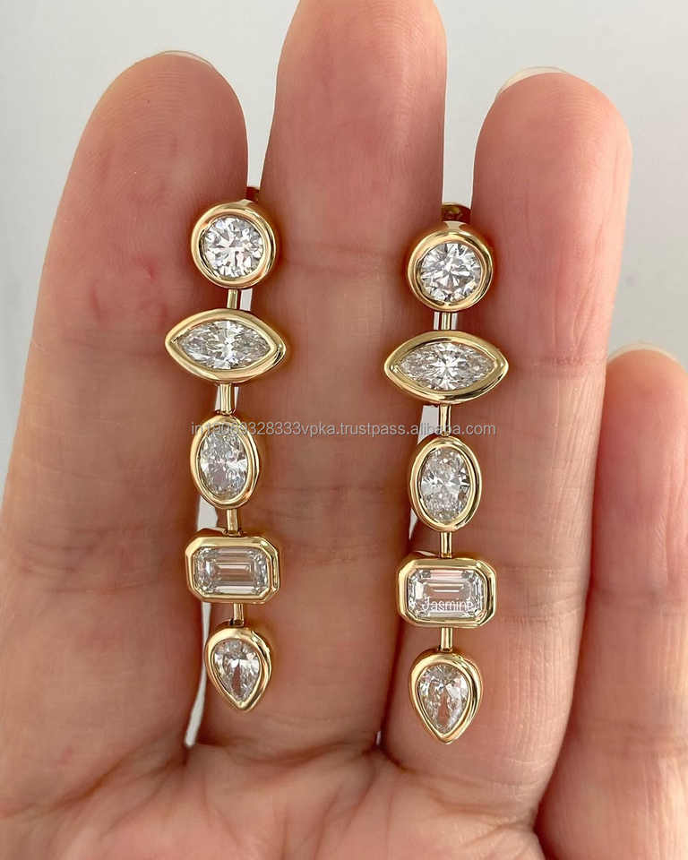 Women's 925 Silver Drop Earrings Multi-Shape Simulated Diamond with Bezel Setting earring for Party, Engagement or Birthday Gift