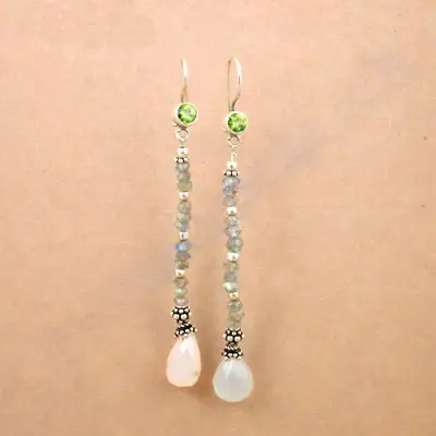 Women's 925 Silver Drop Earrings with Peridot & Moonstone 18K Gold & Freshwater Pearl Cute Style for Weddings
