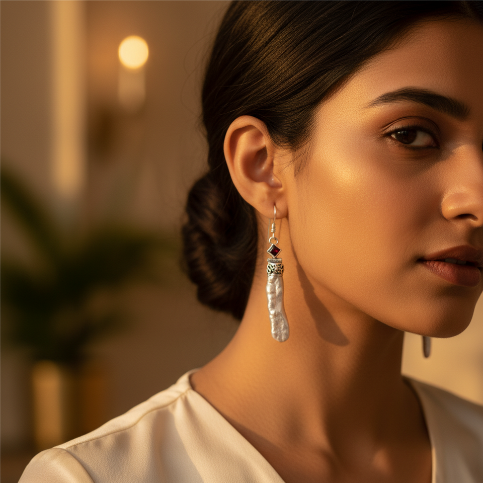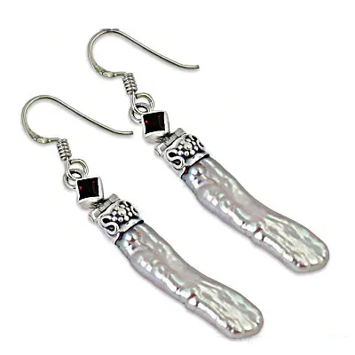 Women's 925 Silver Freshwater Pearl Garnet Earrings Elegant Jewelry