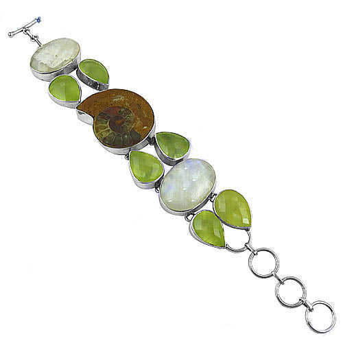 Ammonite Fossil,Green Peridot,MoonstoneGemstones