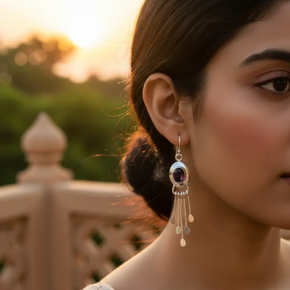 Women's 925 Silver Gold-Plated Amethyst Drop Earrings Trendy Dangle Jewelry with Pearl Diamond Zircon for Parties or Gifts