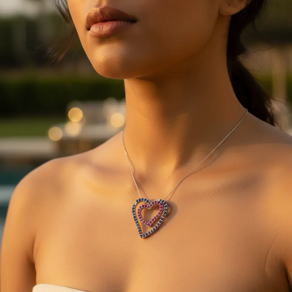 Women's 925 Silver Heart Stud Earrings with Ruby & Sapphire 14K Gold Plated Trendy Fruit Pattern Diamond Main Stone Jewelry