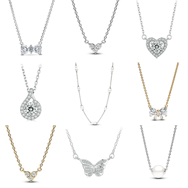 Women's 925 Silver Love Heart Necklaces-Gold & Rose Gold Plated Zircon Trendy Jewelry Ideal Wedding Gifts