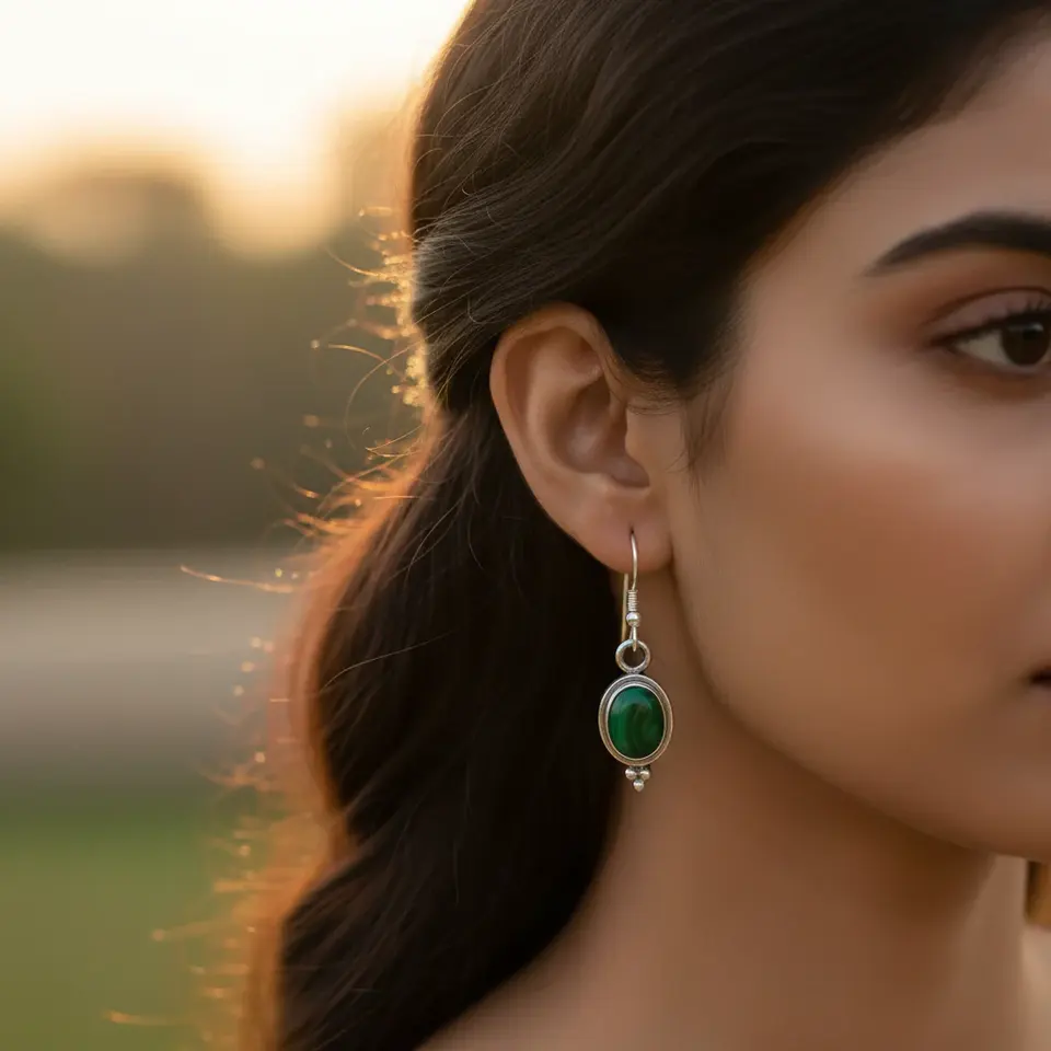 Women's 925 Silver Malachite Earrings with Oval Gemstone Gold Plated Pear Princess Heart-shaped Diamond Ruby Zircon Jewelry