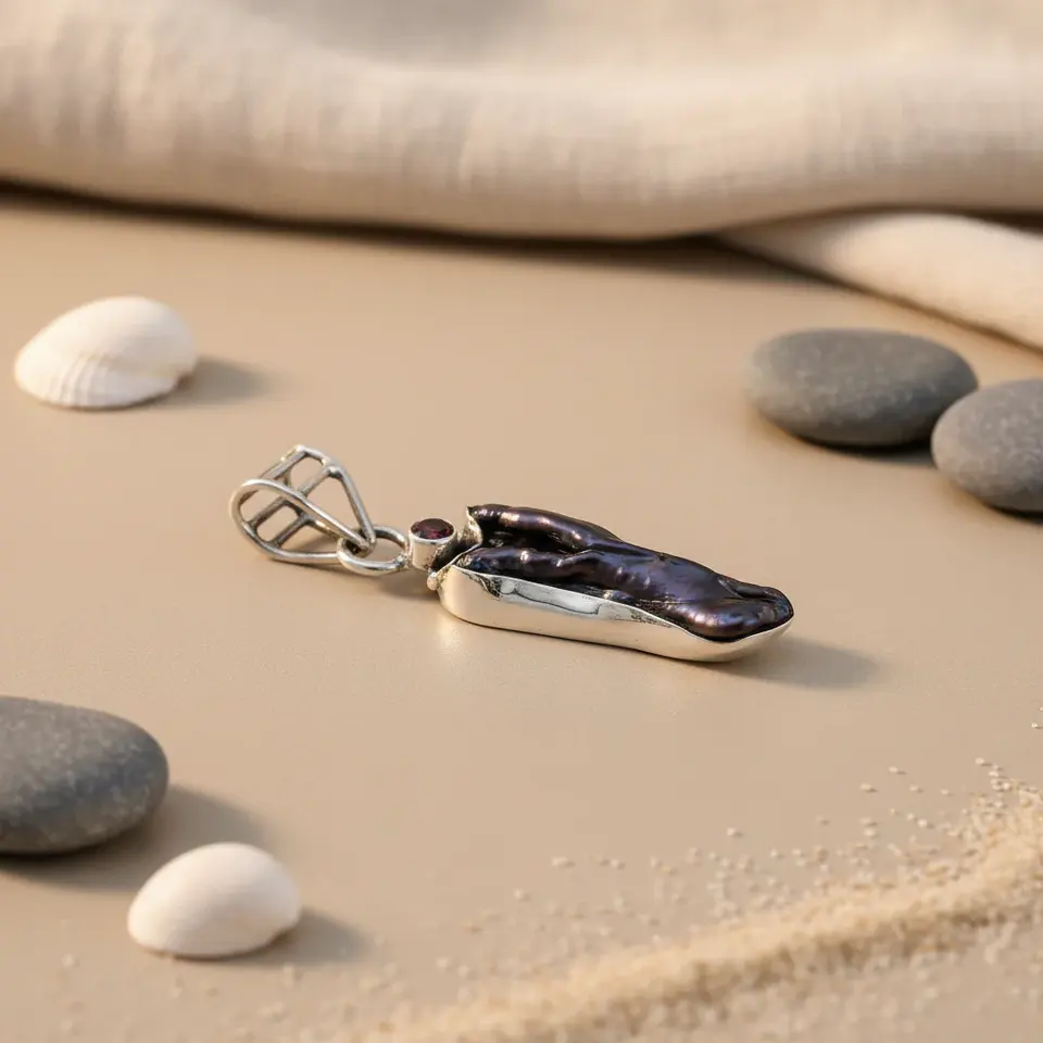 Women's 925 Silver Necklace Black Pearl Garnet Pendant Rhodium Plated Religious Style Diamond Main Stone Perfect Gift India