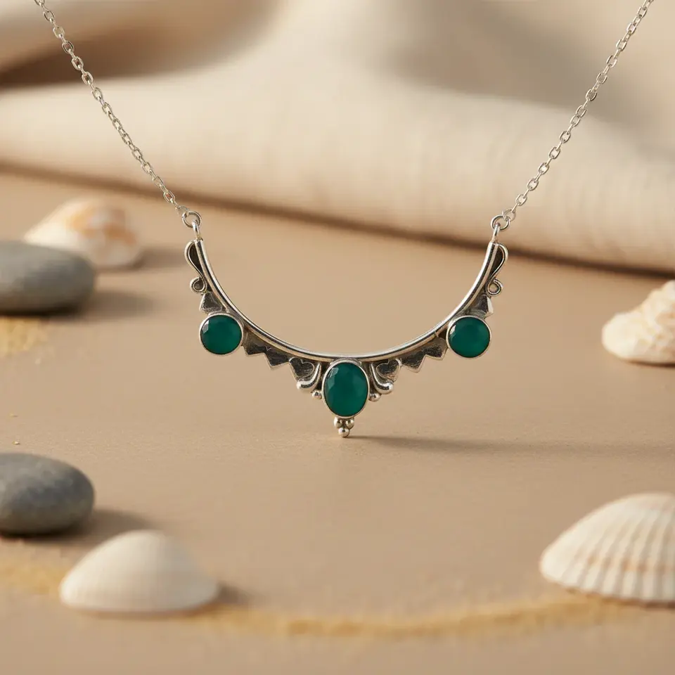 Women's 925 Silver Necklace Green Gemstone Cushion Cut Diamond 14K Gold Rhodium Plated Box Chain Geometric Pattern Pearl Gift