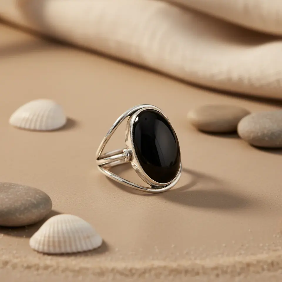 Women's 925 Silver Onyx Statement Ring Handmade Boho Jewelry with Gold & Rhodium Plating Cut Stone Inlay