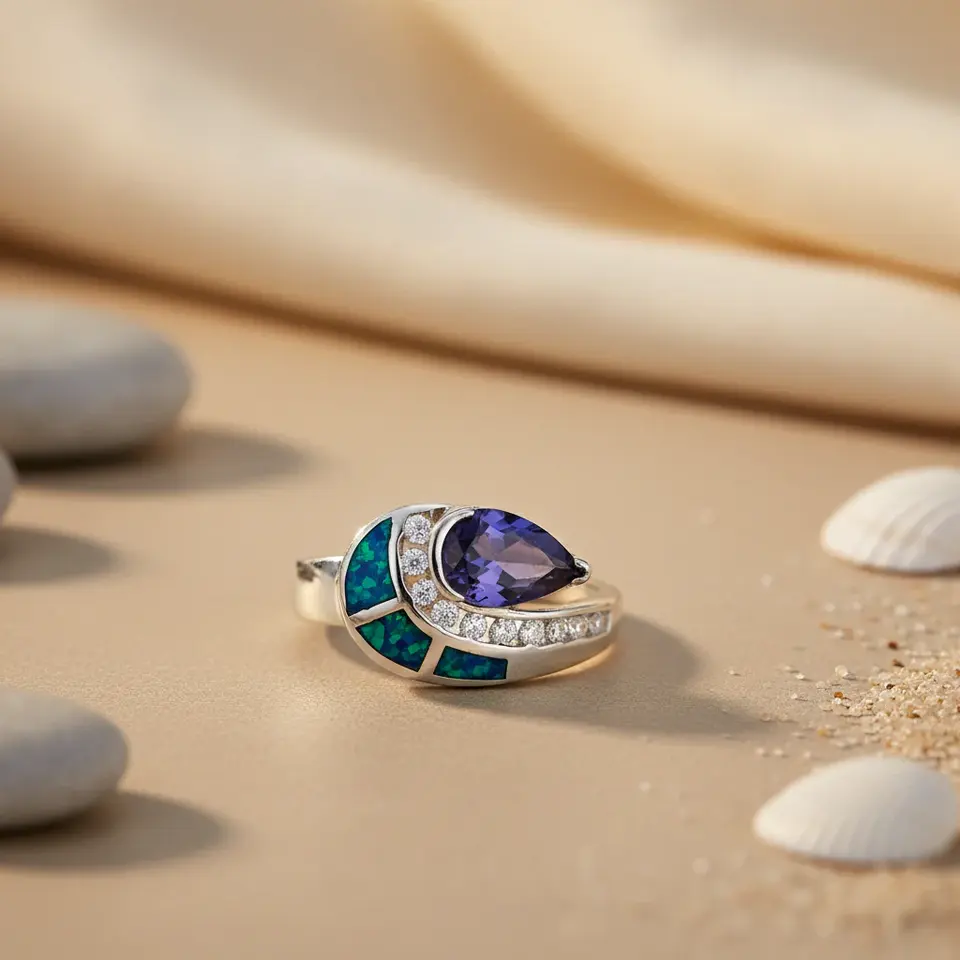 Women's 925 Silver Ring Tanzanite Opal Zircon Gemstones IGI Certified Rhodium Plated Natural Stone Inlay Elegant Gift Jewelry