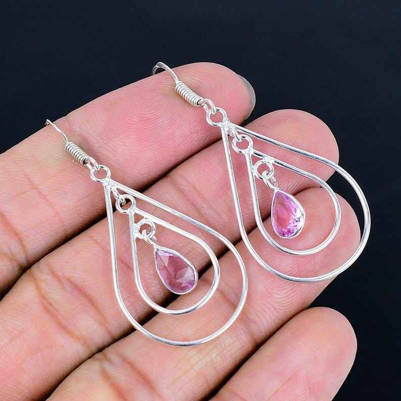 Women's 925 Solid Sterling Silver Pink Topaz Gemstone Drop Earrings Elegant Dangle Design for Party Top Silver Jewelry for Girls