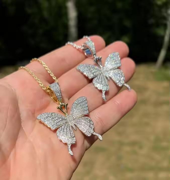 Women's 925 Sterling Silver Butterfly Pendant Iced Moissanite Rhodium 14K Gold Plating Passes Diamond Fashion Pendants Charms