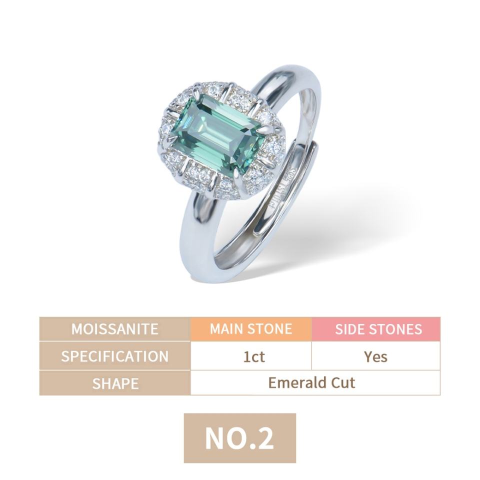 Women's 925 Sterling Silver Emerald Cut Vivid Green Moissanite Engagement Ring Resizable Fine Jewelry Gift Ring