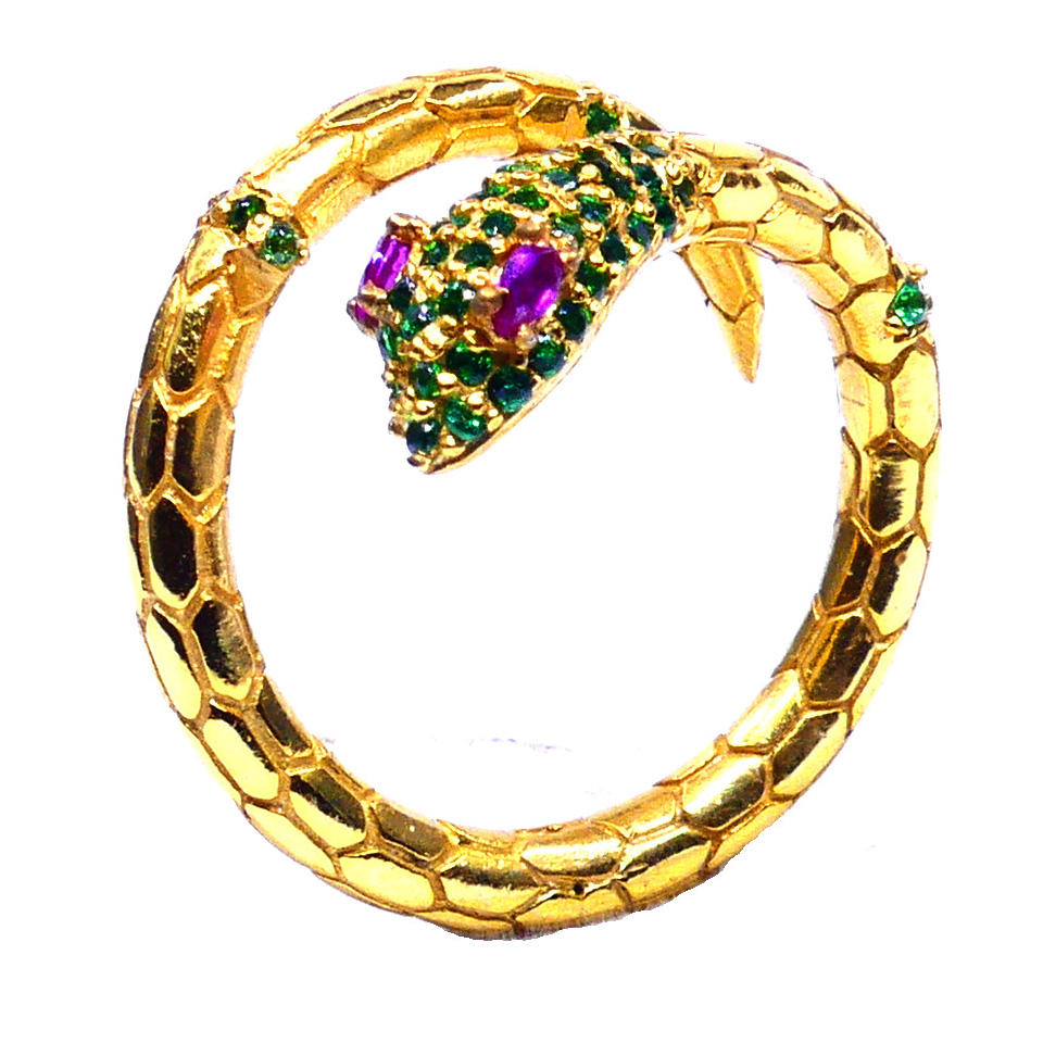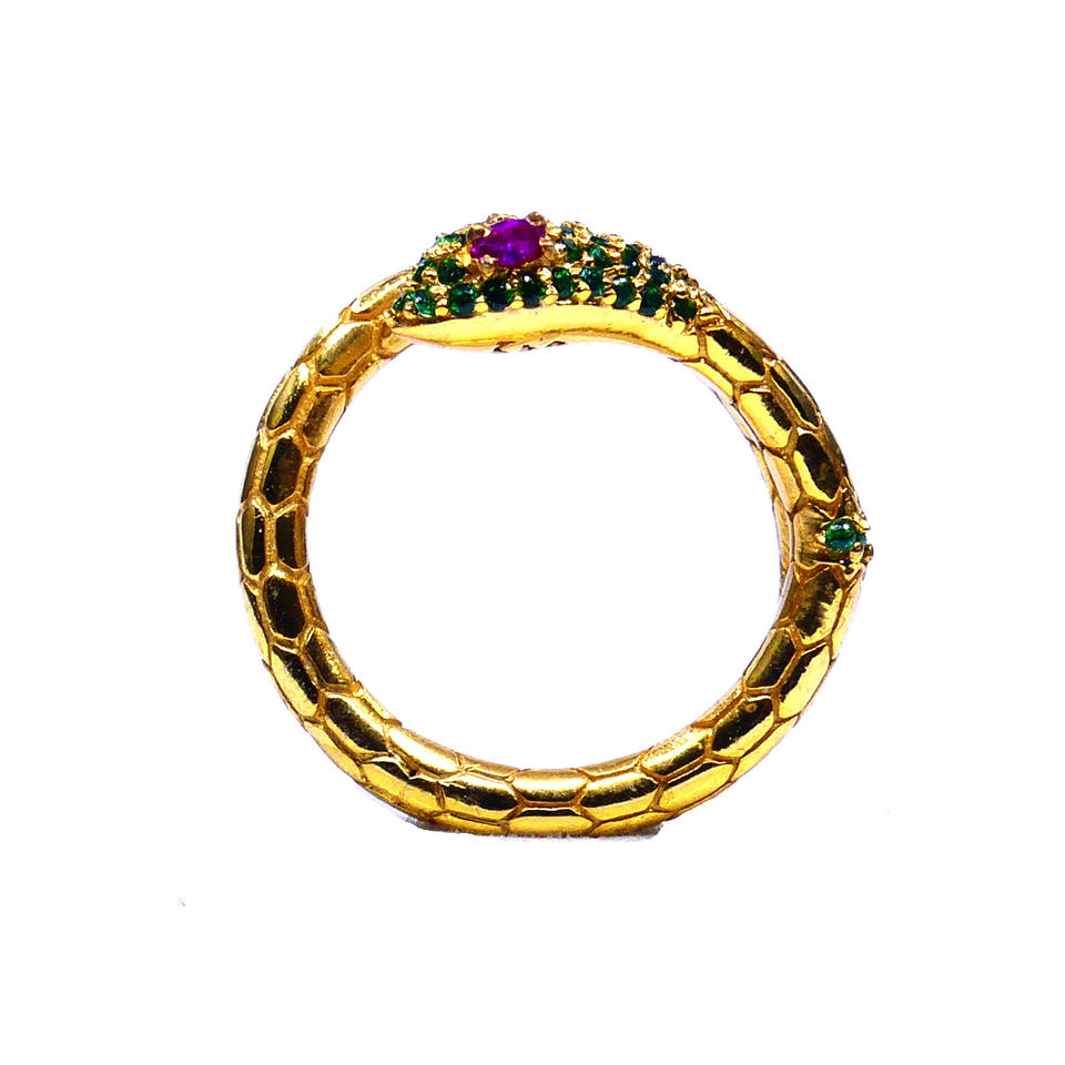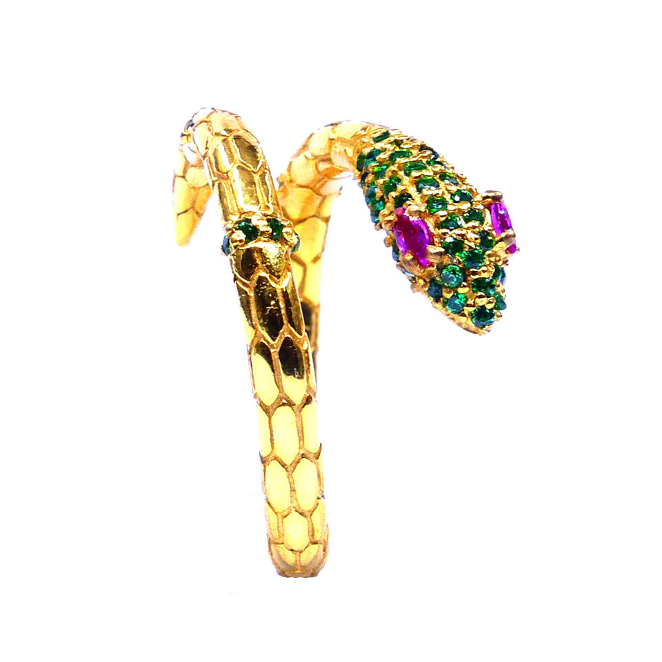 Women's 925 Sterling Silver Snake Ring Classic Gold Plated Adjustable with Ruby Green Topaz Gemstones for Weddings Daily Wear