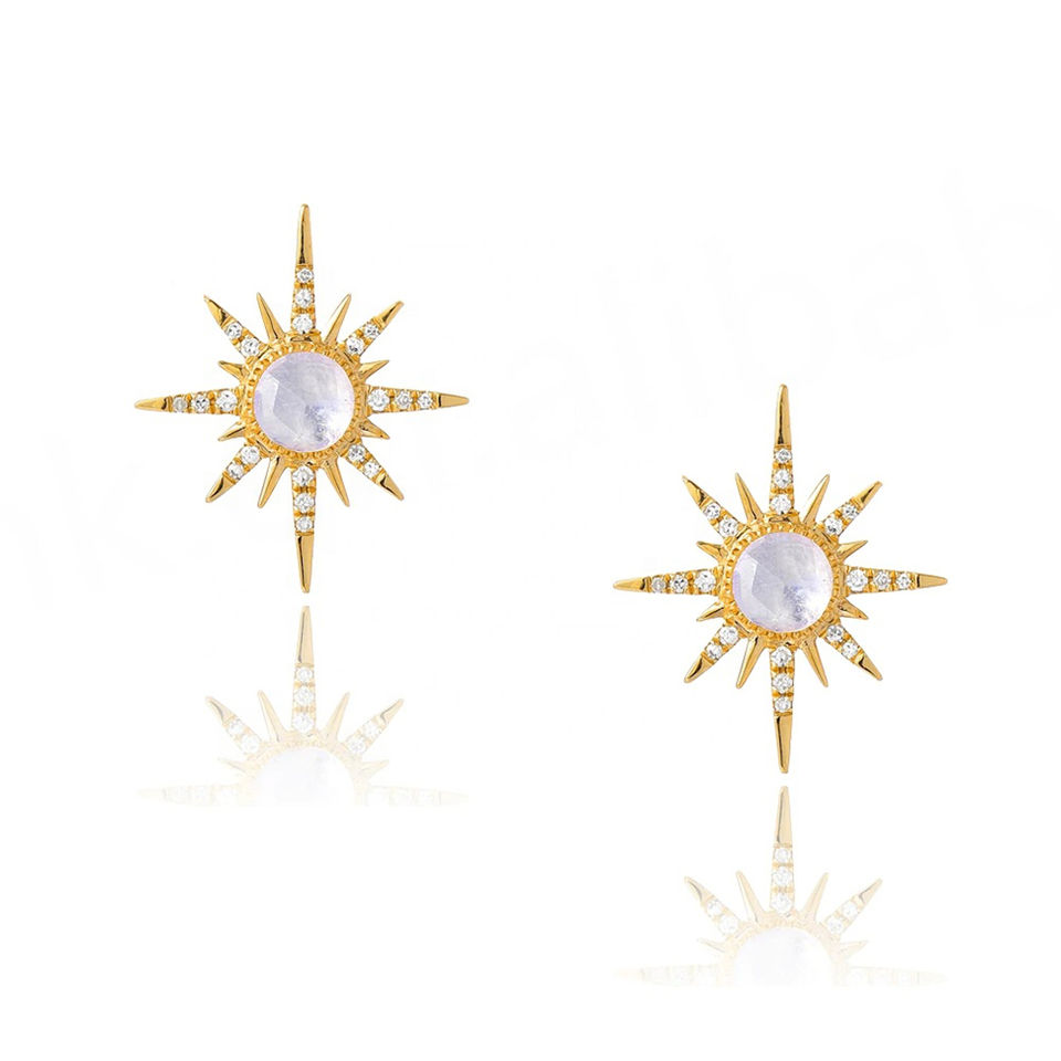 Women's 925 Sterling Silver Starburst Rainbow Moonstone Diamond Drop Earrings Fashionable Ear Jewelry for Gift