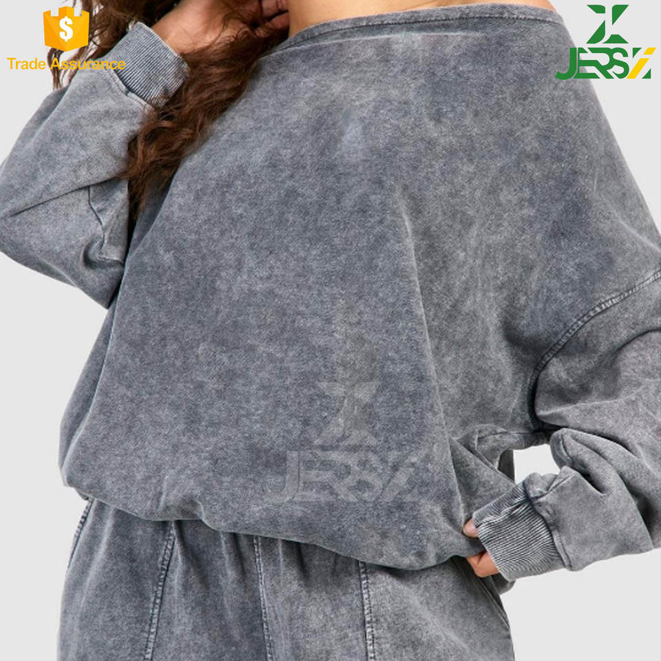 Acid wash tracksuit Off the shoulder set Charcoal tracksuit