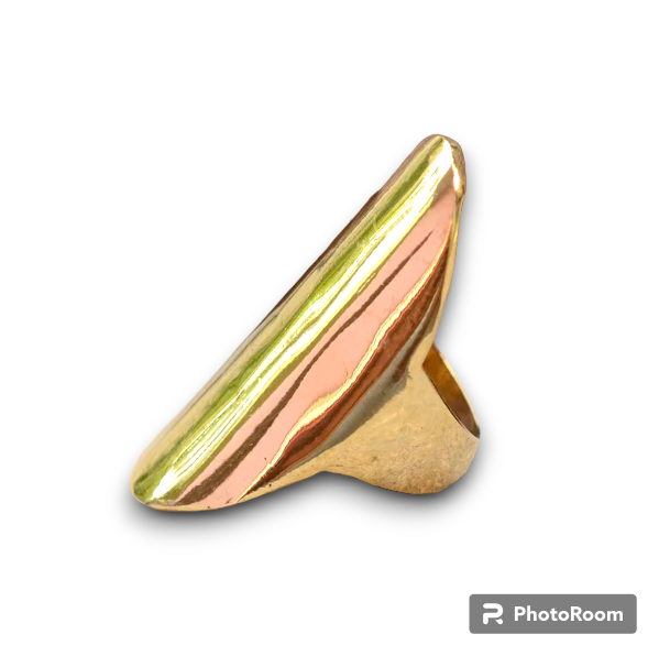 Women's Adjustable Abstract Sculptural Design Statement Ring Long Bold Modern Brass with Rose Gold Plating