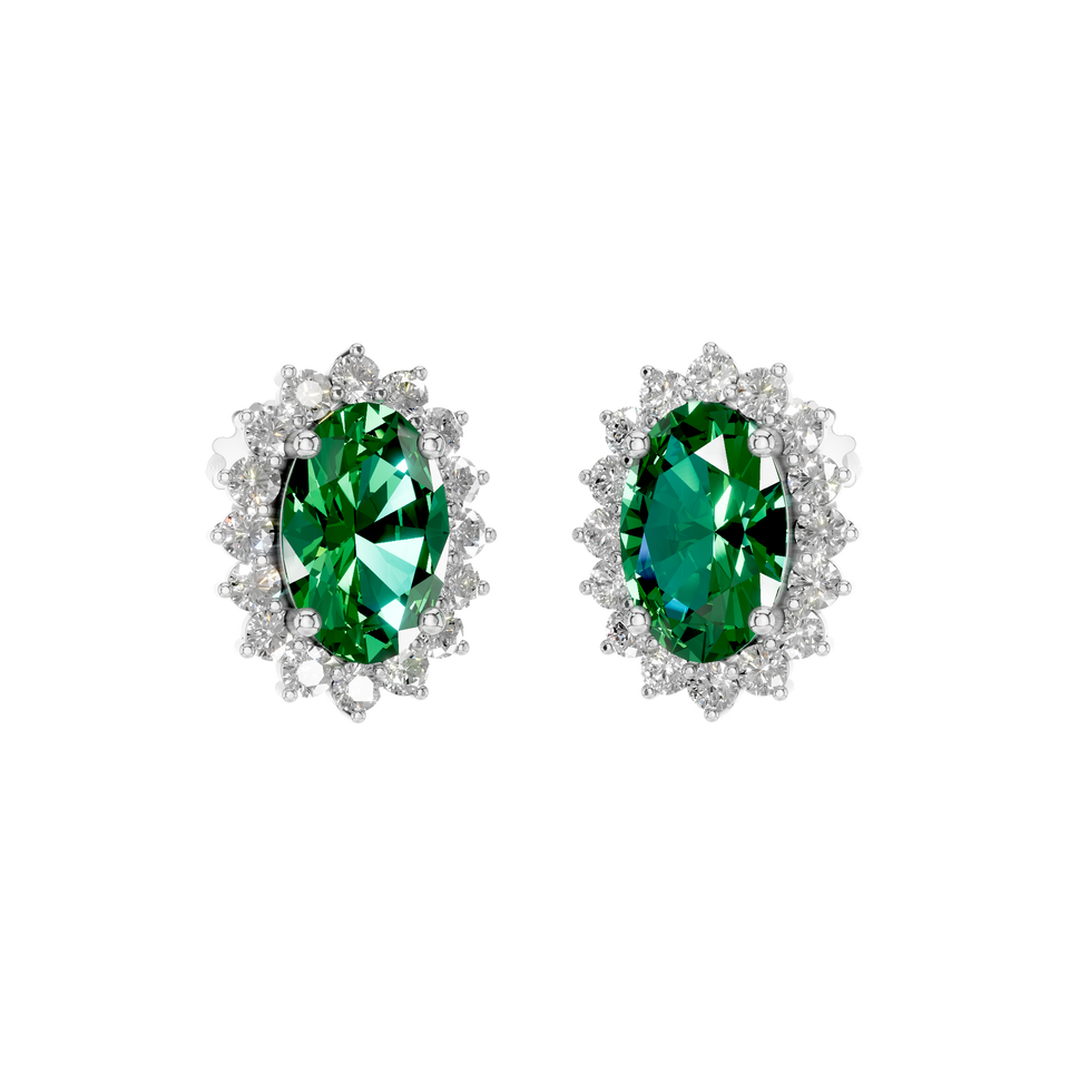 Style:Oval-Cut Emerald Halo Stud Earring with Natural Diamonds