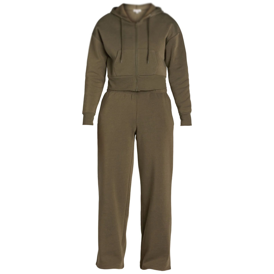 Women's Autumn Casual Knitting 100% Cotton Long Sleeve Button Fleece Hoodie and Sweat Pants Two Piece Set Gym Tracksuit