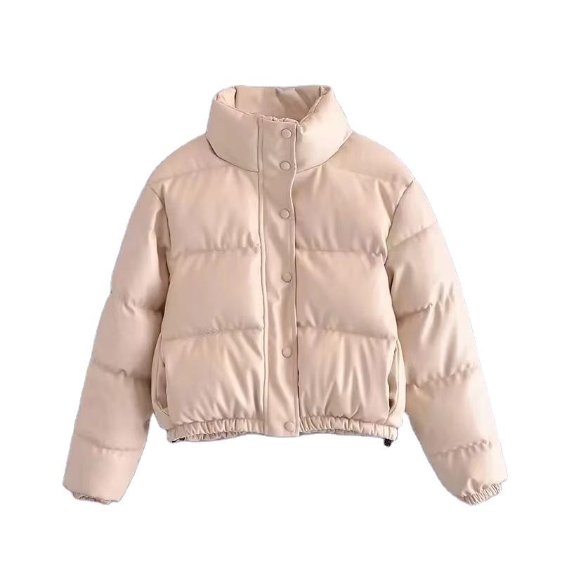 Women's Autumn Faux Leather Breathable Motorcycle Puffer Jacket Short Warm Coat Quilted Fashion Wholesale