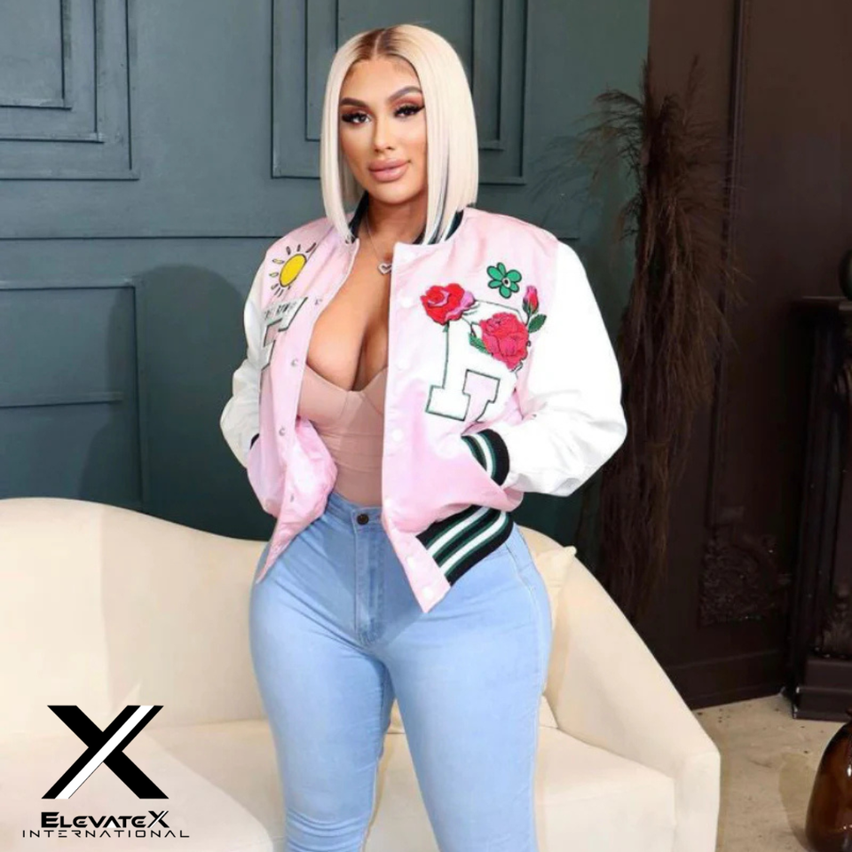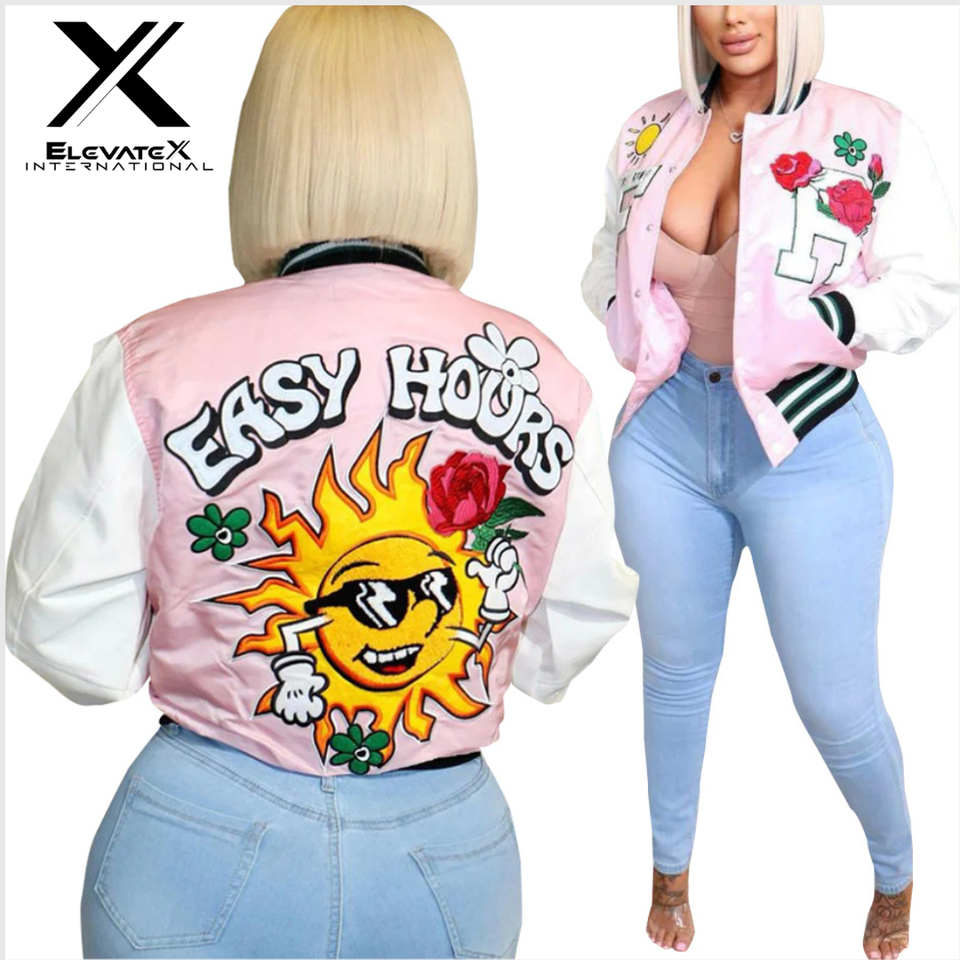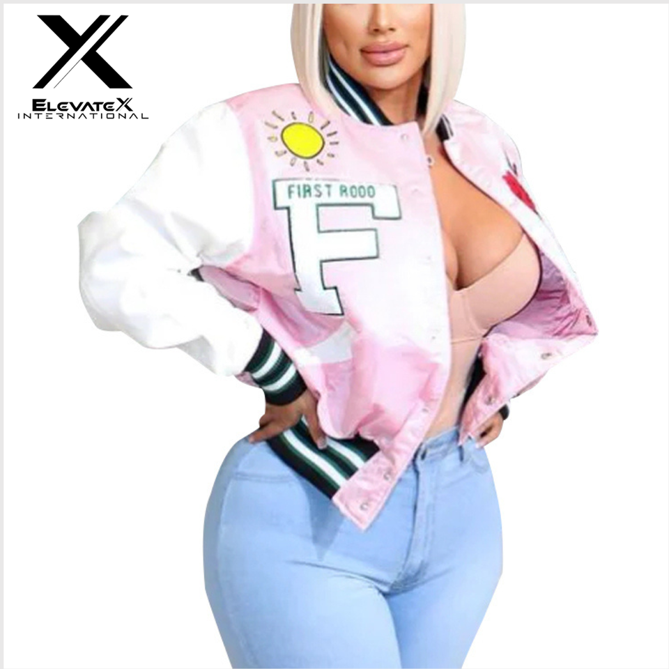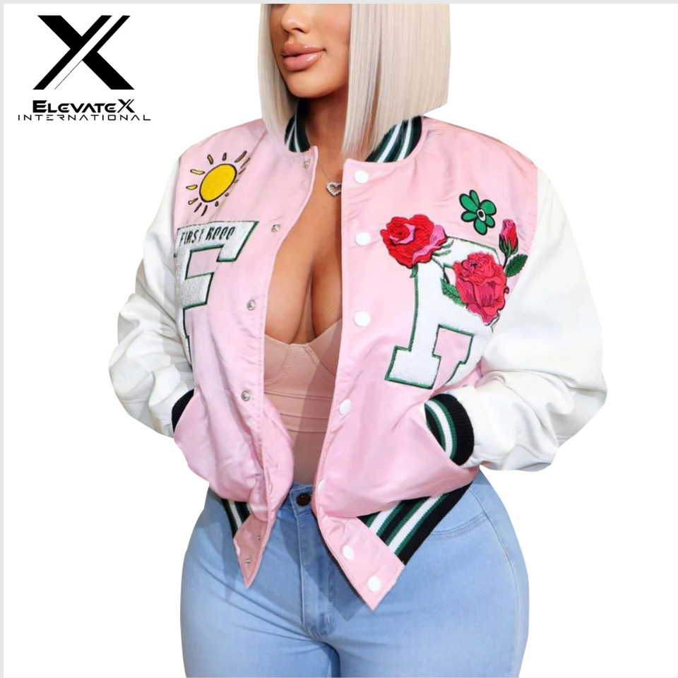 Women's Autumn Street Fashion Plus Size Varsity Jacket New Style Windproof Wool Cotton Fill Quilted Printed Canvas Embroidery